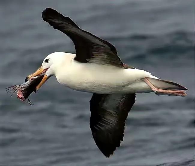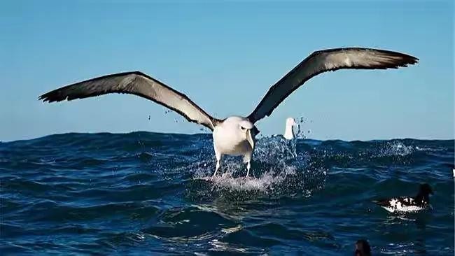 成年的信天翁一年飞过的距离可绕地球三圈,它们有90%的时间都是在海上漂泊的,而且总是在海浪最凶猛的地方捕食。