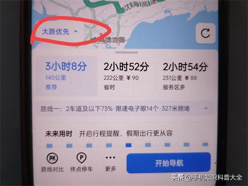 接着就能在地图上能看到走的是小路还是高速。点进去一定要选择“大路优先”,才不会走小路,现在就可以开始导航啦。(如上图所示)