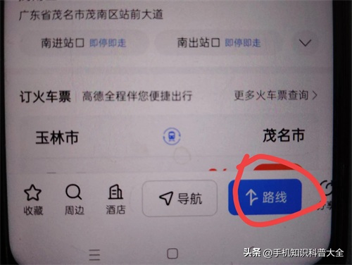 先别着急导航,点击这里的“路线”。(如上图所示)