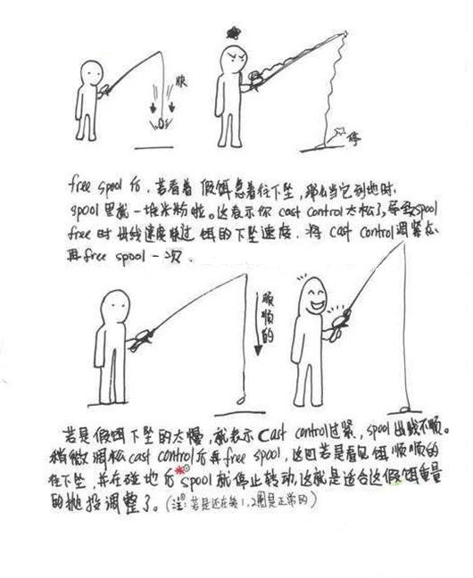 图3详解:水滴轮假饵重量的抛投调整(每回我都像个高手似的再调)本人试验证明,按照这个方法确实不容易炒粉(上图)