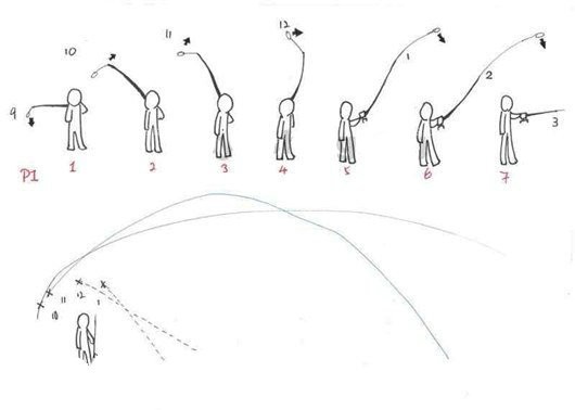 图4详解:水滴轮的两种常见抛投方式(我还在不断的练习中,哈哈)