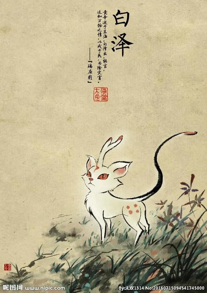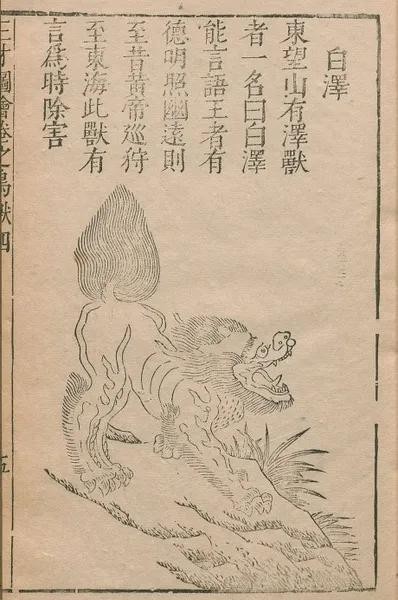 《云笈七签·轩辕本纪》记载,“帝巡狩,东至海,登桓山,于海滨得白泽神兽。能言,达于万物之情。因问天下鬼神之事,自古精气为物、游魂为变者凡万一千五百二十种。白泽言之,帝令以图写之,以示天下。帝乃作祝邪之文以祝之。”