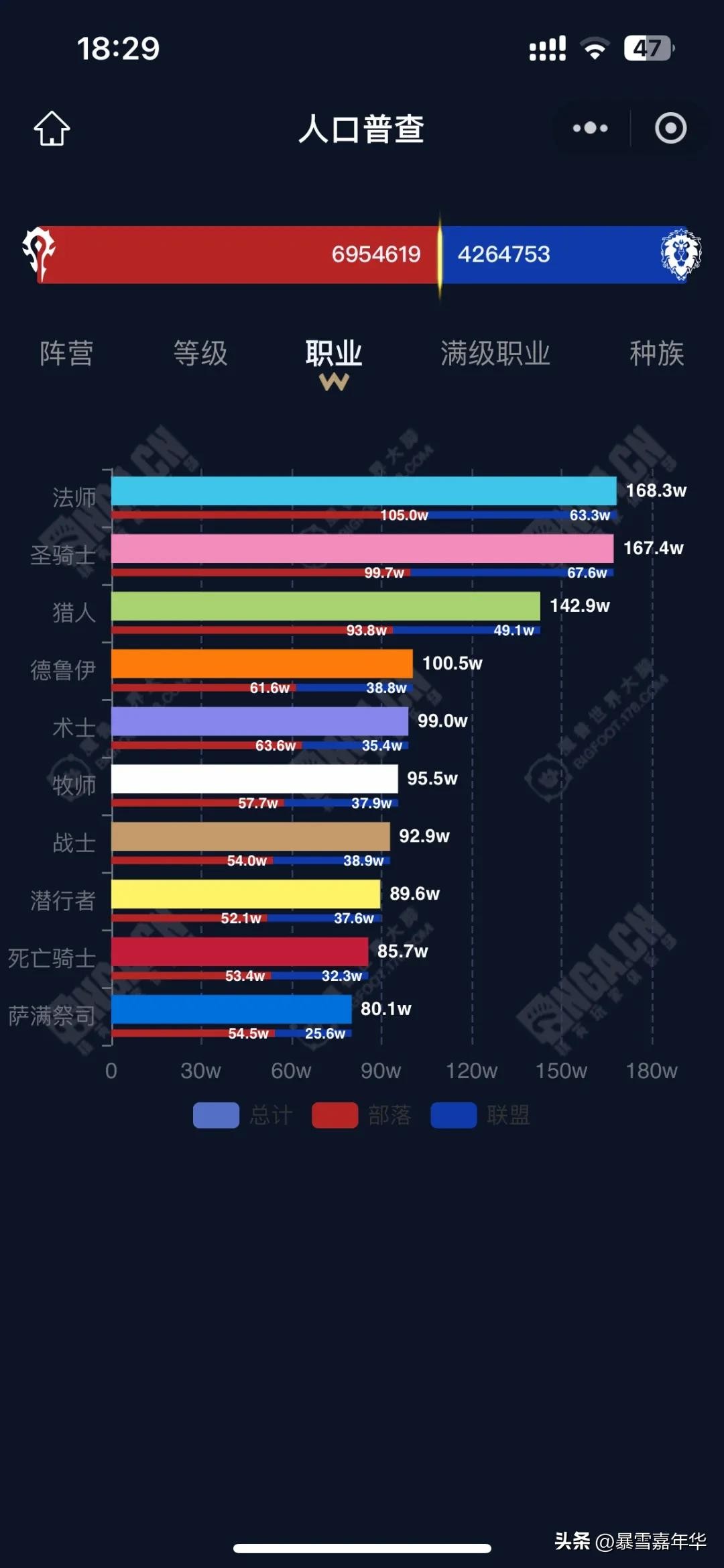 (总人口满级职业分布,带阵营)