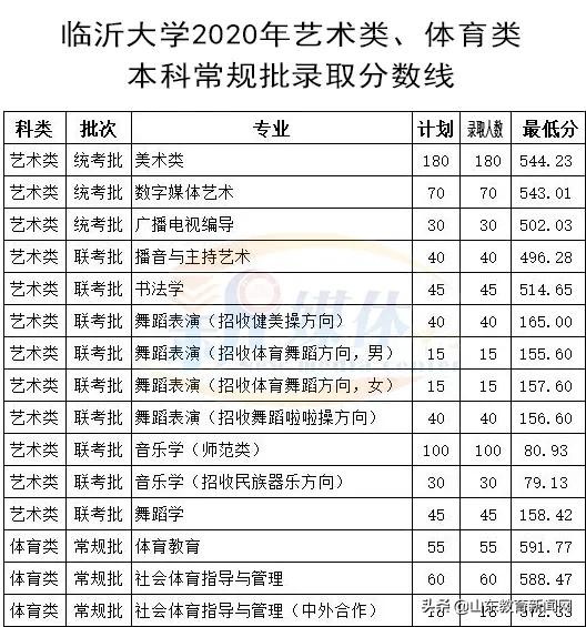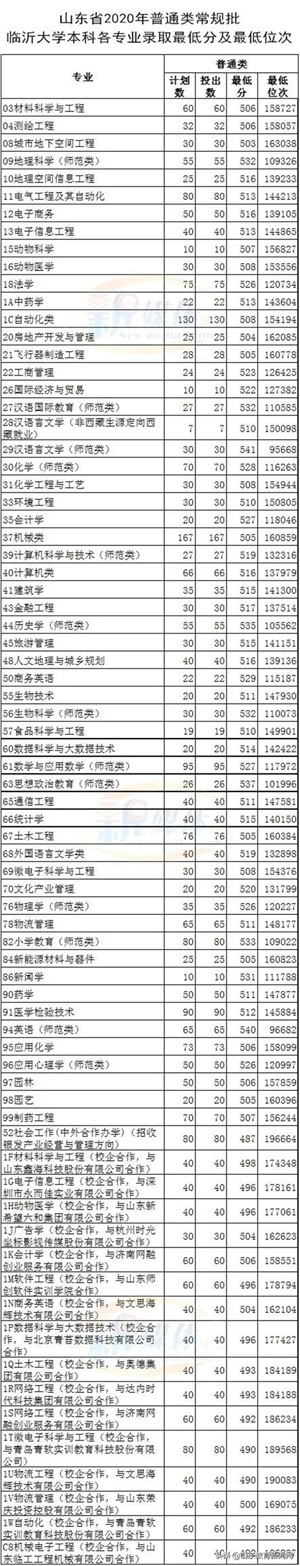 普通类常规批本科专业最低分503分!临沂大学2020年本科各专业录取分数线