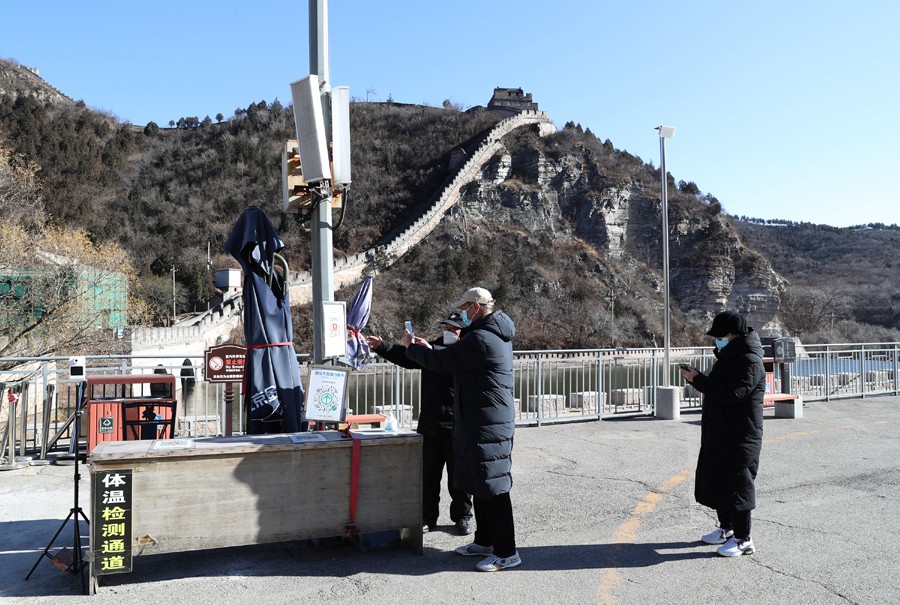 11月30日,游客扫码进入居庸关长城景区。中国日报记者 邹红 摄