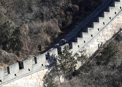 11月30日,游客在居庸关长城景区游玩。中国日报记者 邹红 摄