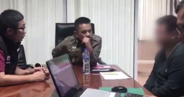 案发后,泰国警方对被告人张某凡(右一)进行调查。