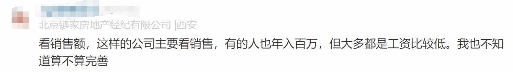 链家员工原话2:看销售额,这样的公司主要看销售,有的人也年入百万,但大多都是工资比较低。我也不知道算不算完善