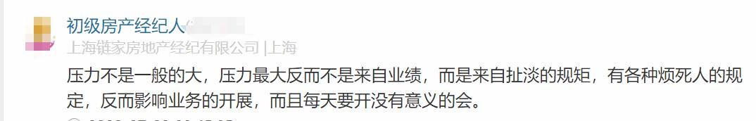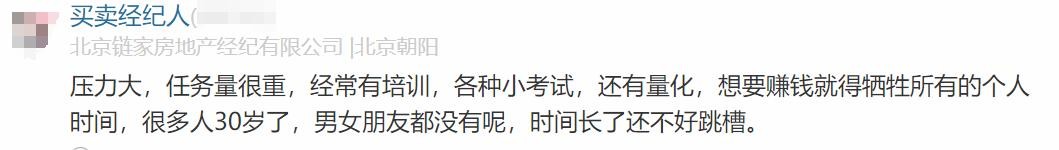 链家员工原话2:压力大,任务量很重,经常有培训,各种小考试,还有量化,想要赚钱就得牺牲所有的个人时间