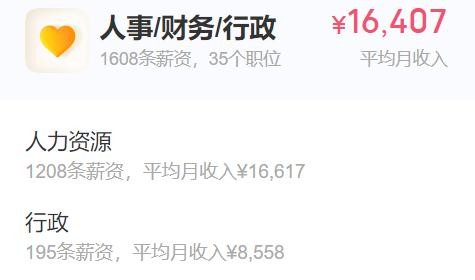 其中,链家的【销售岗】平均月薪10806元、【人事/财务/行政岗】平均月薪16407元、【市场岗】平均月薪12119元、【运营岗】平均月薪13926元、【技术岗】平均月薪35990元。