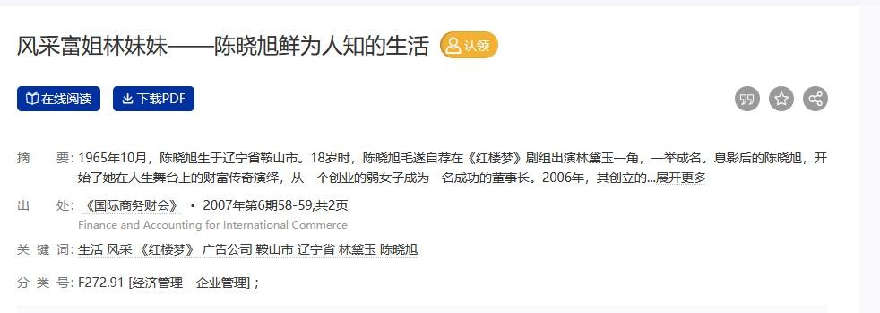 参考资料:[1]风采富姐林妹妹——陈晓旭鲜为人知的生活[J].国际商务财会,2007(6):58-59