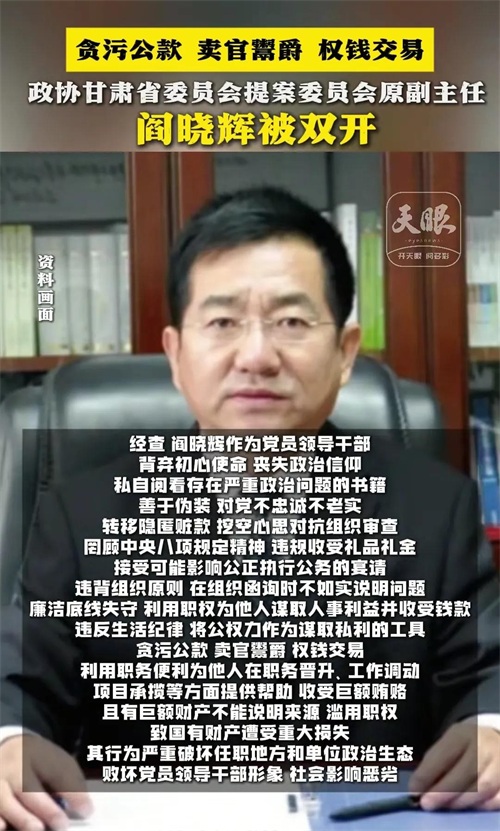 贪腐无底线!阎晓辉利用职权大肆敛财,最终难逃“双开”命运!