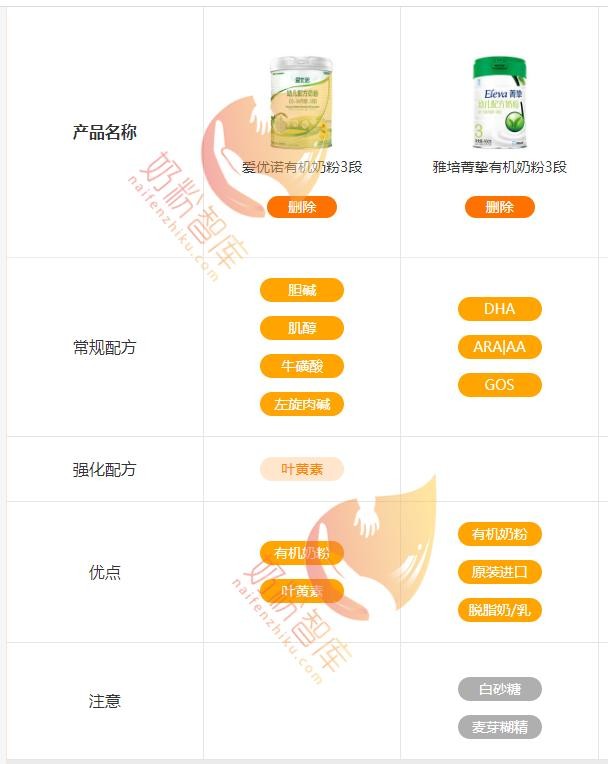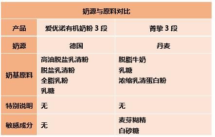 为了更加直观地对比爱优诺有机奶粉和菁挚奶粉,我们看看奶粉智库网的对比截图: