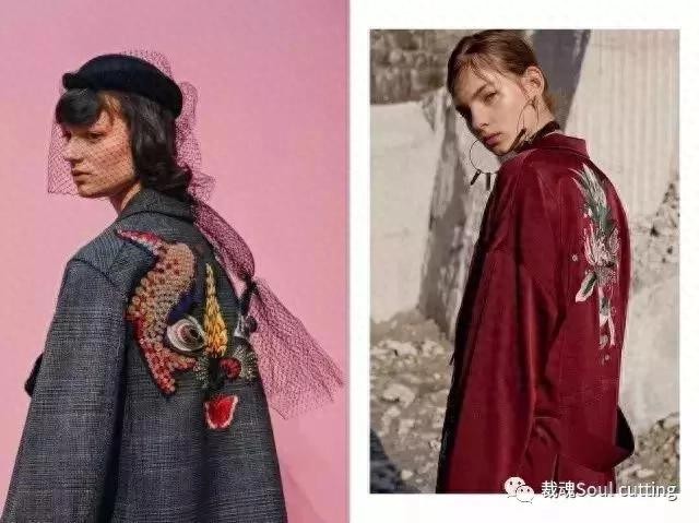 刺绣作为最常在衣服中出现的的传统工艺之一,分别为:错针绣、乱针绣、网绣、满地绣、锁丝、纳丝、纳锦、平金、影金、盘金、铺绒、刮绒、戳纱、洒线、挑花等等。