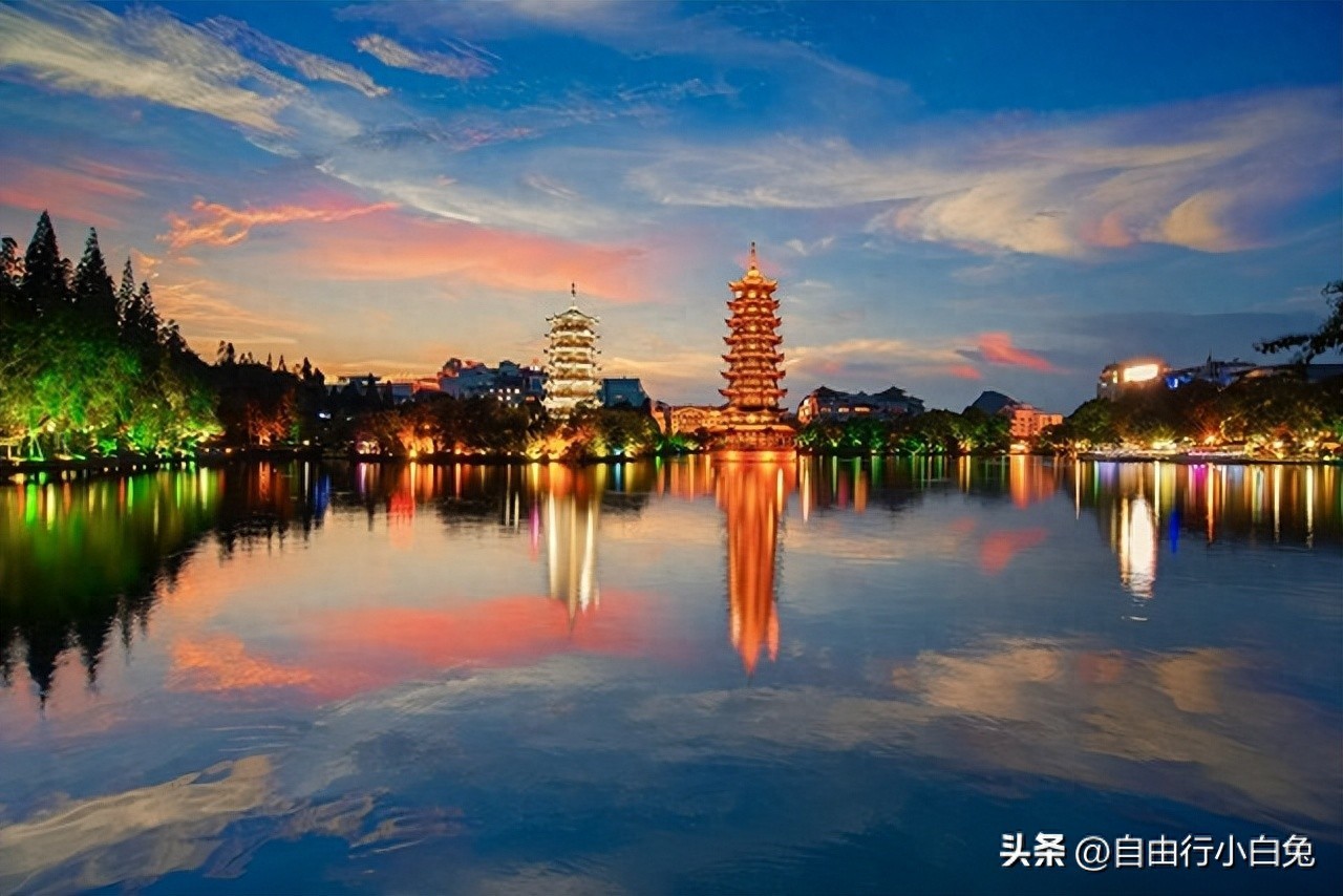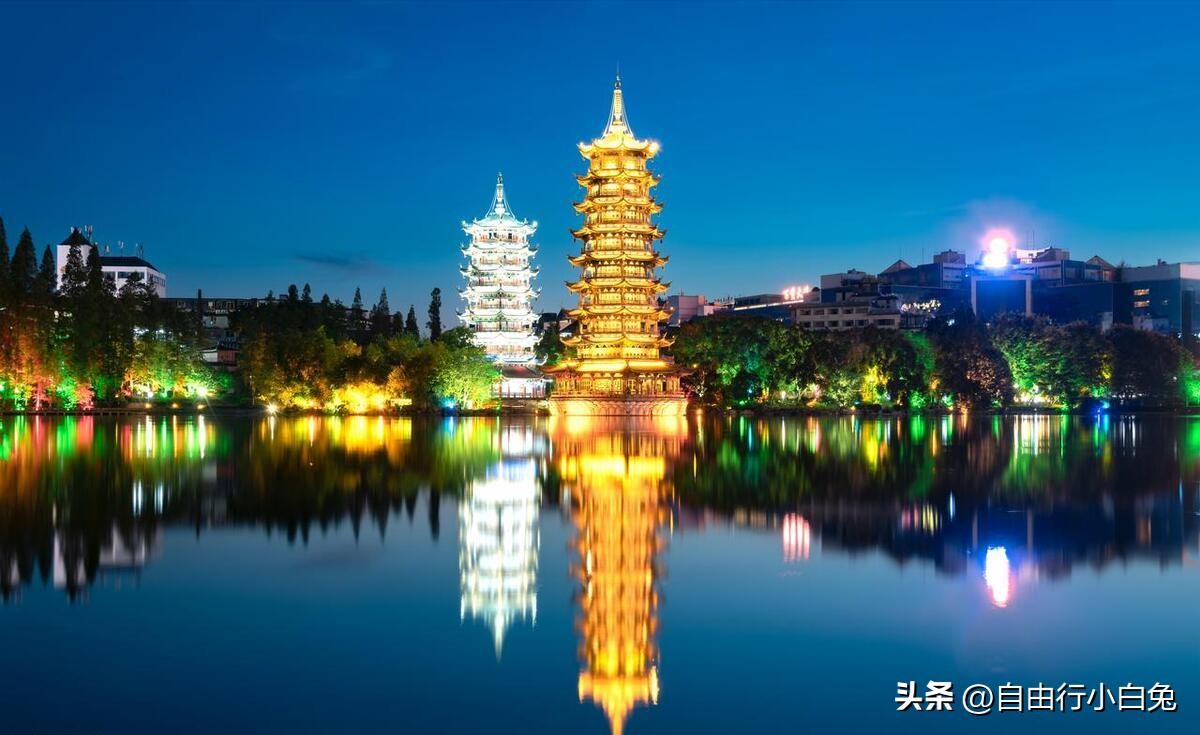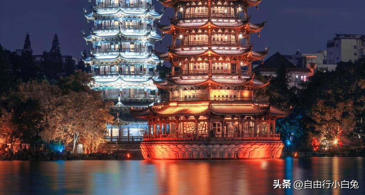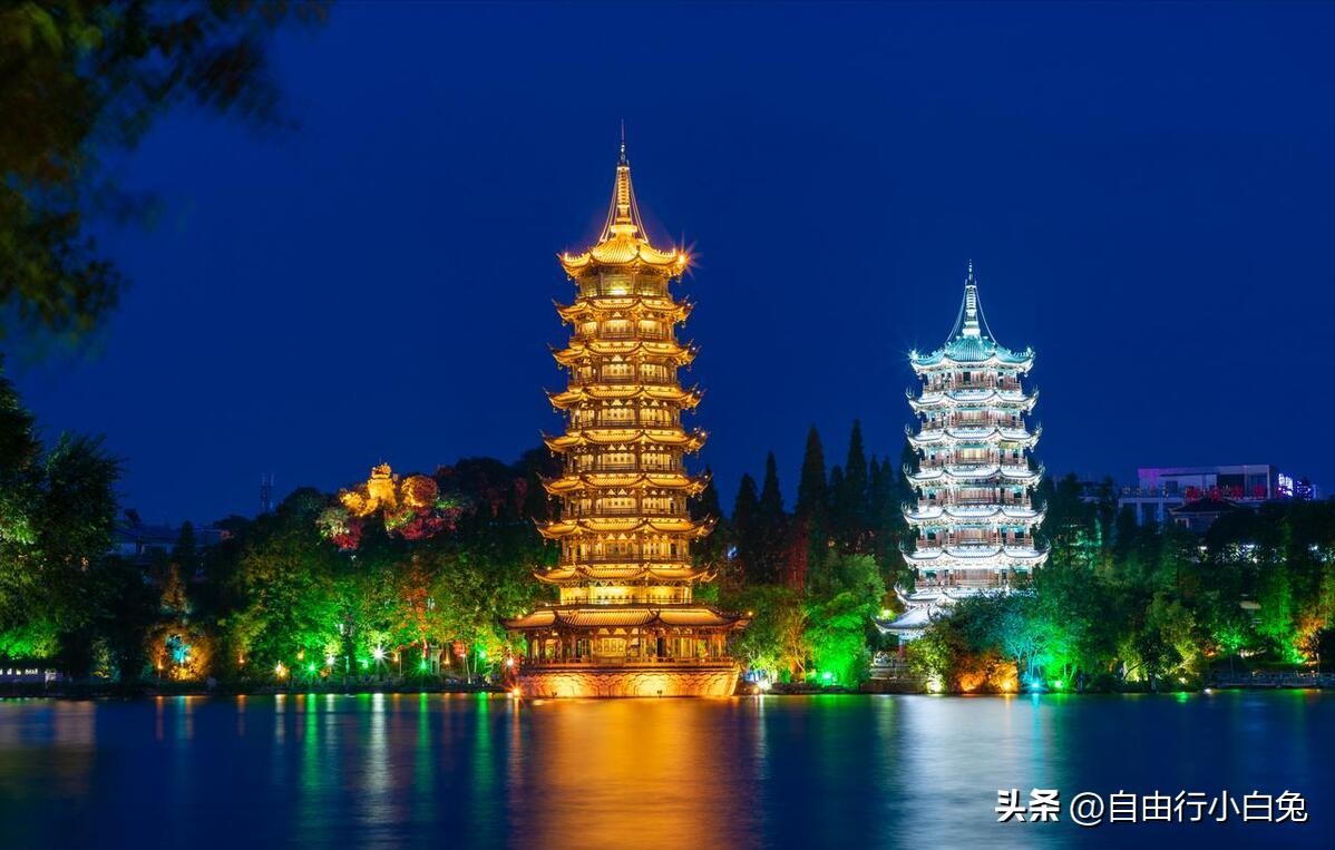 桂林日月双塔:古老文化的华丽见证,夜色中的绚丽明珠