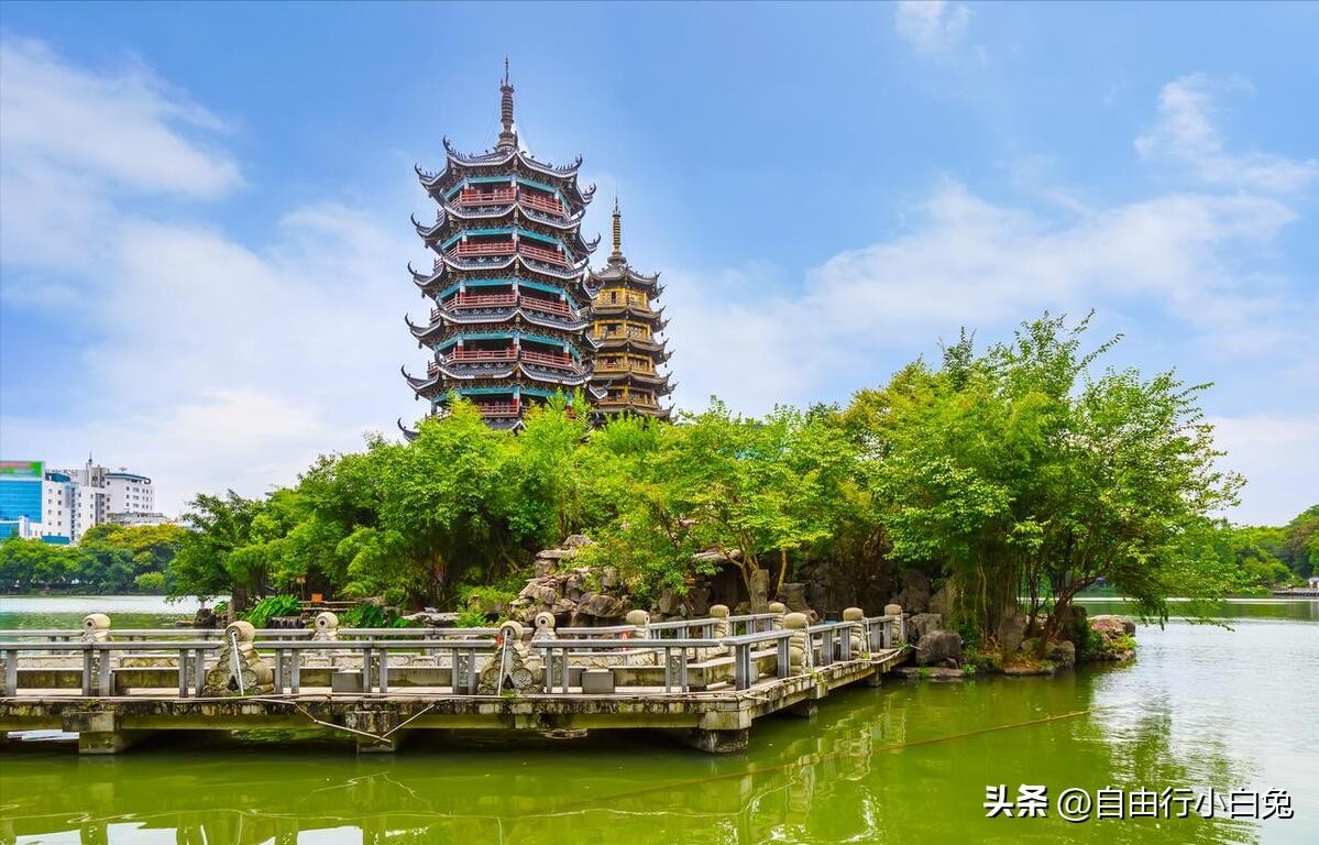 日月双塔是桂林市的文化地标,融合了“儒释道”三教文化。这座集文化、艺术、宗教、建筑、科技、自然景观于一体的文化公园,不仅创造了三项世界之最,还展现了桂林的丰富历史和独特魅力。游客可以通过水下通道抵达日塔,俯瞰桂林市区美景,感受其无限风情。