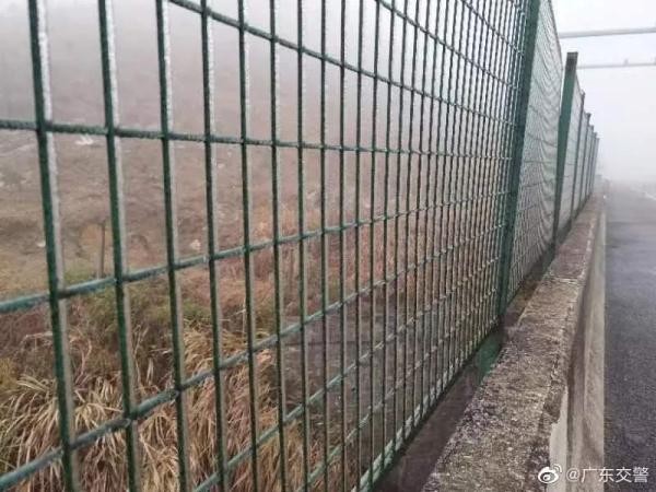 护栏和防抛网均出现不同程度结冰