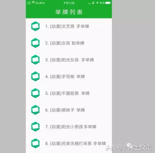 制作举牌照。挑选一个模板,然后点击进去。我点第一个,点进去后会出现一张动漫图。会发现这里面的所有图都有一张空白的纸,不是单手的就是双手的。
