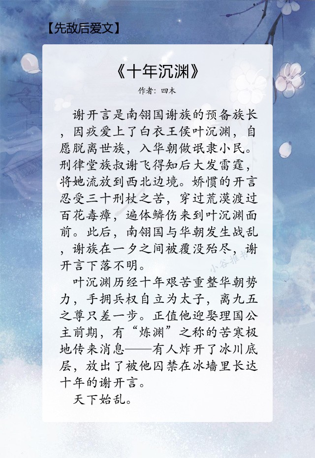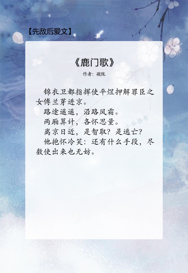 你想看的,我这里都有!大家好,我是你们的推书君小谷,今天给大家推荐五本男女主先敌后爱的古言!来,看我的推荐: