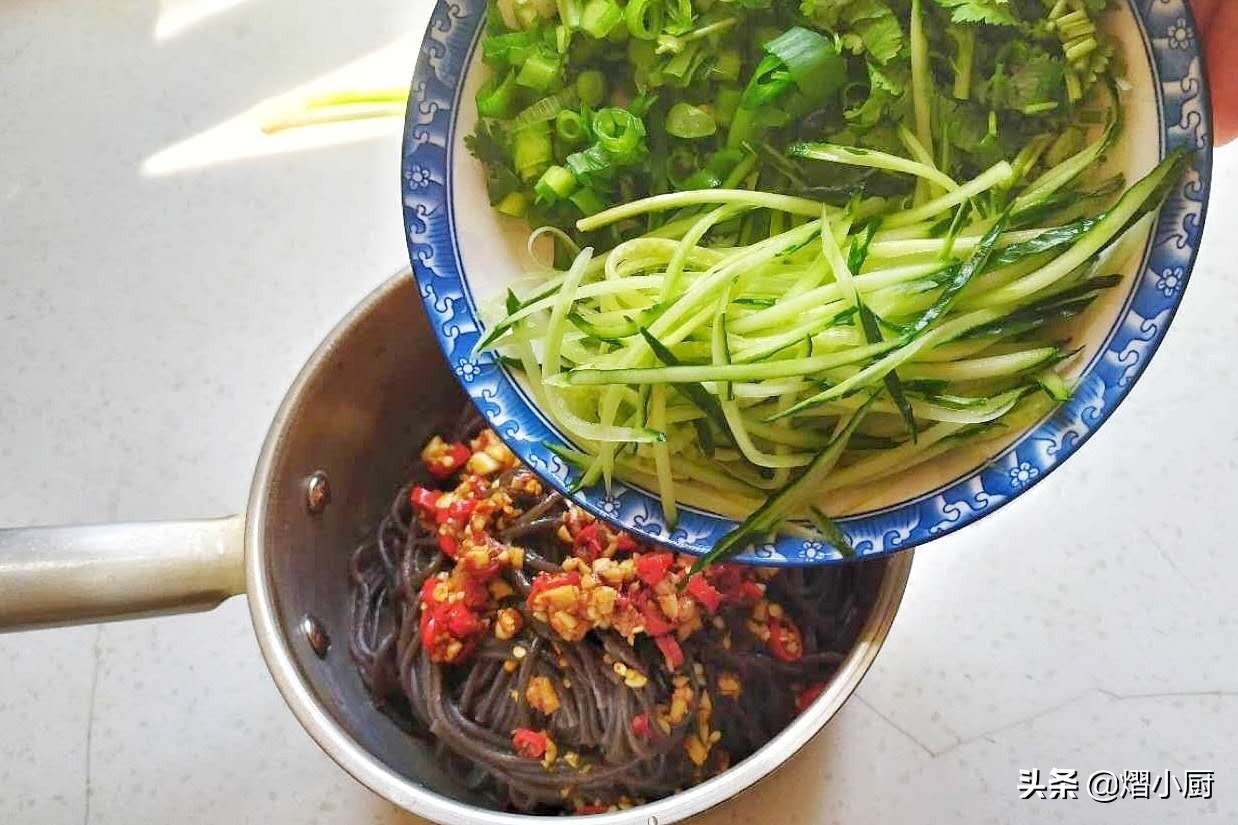 所需食材:蕨根粉,黄瓜,小葱,香菜,蒜,小米辣,盐,白糖,生抽,香醋,油泼辣椒面,香油