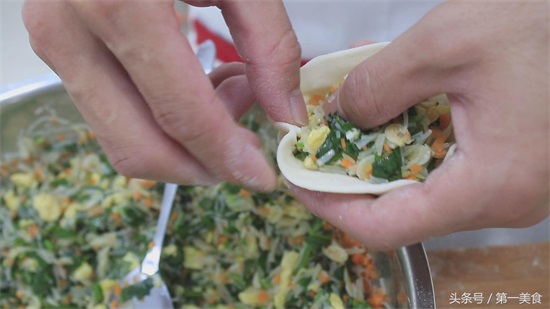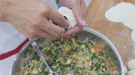 我们用左手的大拇指和食指,捏着包子皮的边缘,