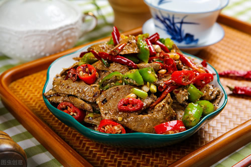 另起锅热油,油热后放入葱丝、姜丝、干辣椒煸炒出香味,然后倒入青椒翻炒均匀,炒几十秒后倒入猪肝炒匀,然后撒入适量的酱油、蚝油、食盐,炒匀入味就可以盛出食用了。