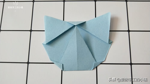 只有两边分别向里折两个小角,修饰一下猫咪的脸型。