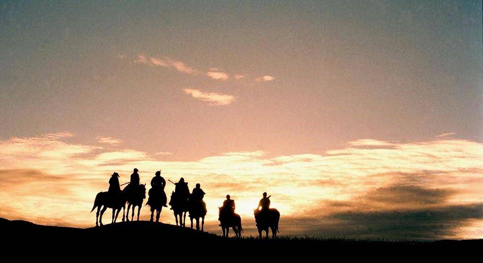 最简单的一点,拍天山的武侠片那么多,请问有几个能和徐克一样亲自跑到天山实地取景呢?其实特效也能做出来,甚至做出的效果可能比实拍还要精美华丽,但徐克就是徐克,他要的就是那种未经雕琢的原始的天地之气,也就是那股沛然莫之能御的混沌元气。在我看来,《七剑》的片头七人策马下天山那一幕,经典到几乎能和《黄飞鸿》第一部黄飞鸿带领民团海边练拳那幕相媲美。二者都是那么热烈昂扬,一股蓬勃之气不可抑制。
