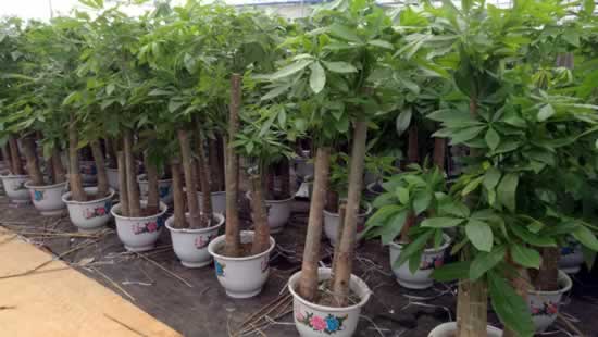 2、浇水的量,我们也是需要注意的,再给发财树浇水的时候没有固定的量,只要能让养护发财树的脱盆里看到水就出来就可以啦,说明浇透了呢,这个时候我们可以在把花盆垫高一些,这样能够通风,把水晾干呢,这样不会出现积水。同时我们在天气炎热的时候可以采取喷雾的形式喷洒在叶片上,这样也能保持叶片的湿润呢。