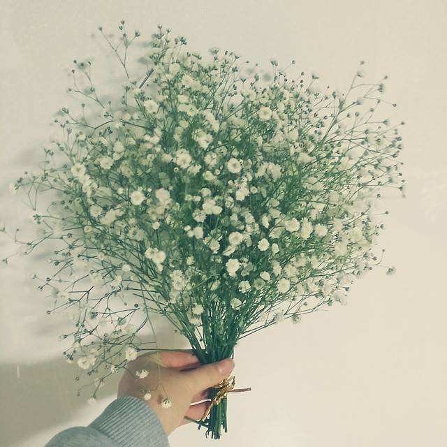 用白色满天星可以搭配玫瑰做配材,象征着漫天星光,代表爱情的真挚。