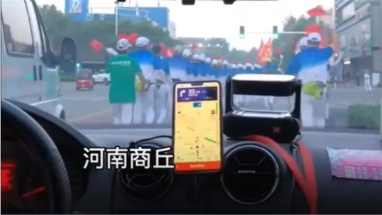 河南商丘有健走团机动车道上锻炼,汽车只能尾随其后。图/视频截图