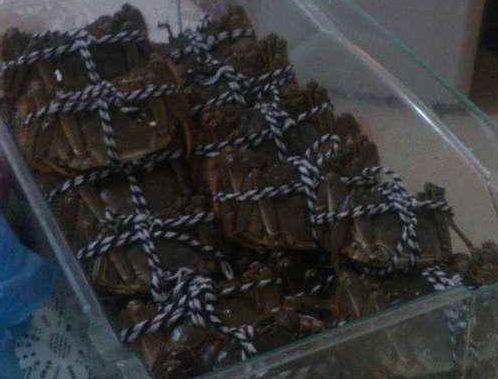 首先我们大家都知道在市场上为了防止螃蟹会夹着客人手的现象,所以说一般螃蟹的腿都是用绳子捆绑着的,而且我们买回家之后也最好不要解开,这样能够减少螃蟹的体力消耗,然后我们将螃蟹放在盘子中间,不要叠加起来一个一个的摆好,然后在上面盖上一层湿的毛巾,能够减少螃蟹的水分流失。因为如果缺水的话,螃蟹就会很快的死掉,然后我们在家这样处理过的螃蟹放进冰箱当中,冰箱的温度最好是保持3~6摄氏度就可以了。