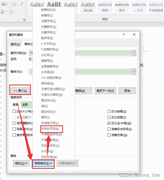 选择了“手动分页符”后,替换窗口“查找内容”位置会出现“^m”,然后点击“全部替换”即可(如图4)。