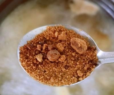 8、4勺糖,白砂糖红糖都可以,我用的红糖,平勺啊,不是冒尖的