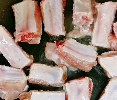 1、排骨提前半小时用凉水浸泡去除血水,然后控干水分,或者用厨房纸擦干