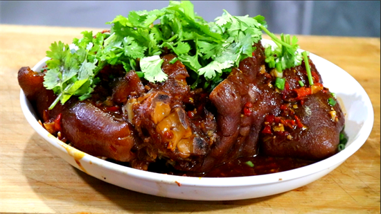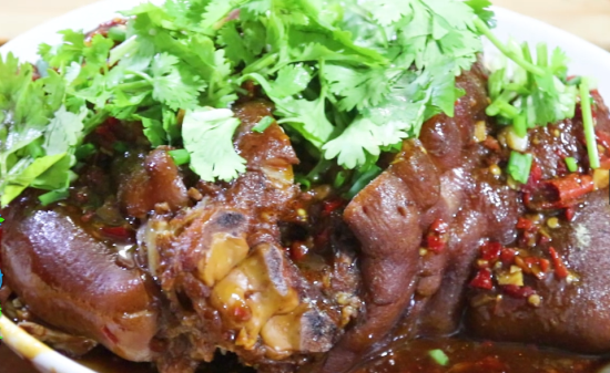 13、炒好的料汁淋在猪肘子上就可以了,香喷喷的,口感细腻,香辣软烂,一顿可以多吃两大碗饭!