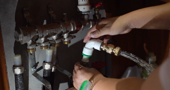 在清洗之前,首先要关闭进回水的阀门,在这一过程中,我们需要确认阀门是否关闭或者是否损坏,我们可以打开泄压阀,观察泄压阀,如果没有水流出或者水流一会就不流了,说明阀门已经关闭好了。关闭好之后我们就可以对管道进行拆卸了。在拆卸的过程中我们需要一个专业的分水器管道拆卸工具,类似一个扳手(拆卸的具体过程可以去观看我之前发过的视频,更清晰明了)。