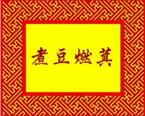 “煮豆持作羹,漉菽以为汁。萁在釜下然,豆在釜中泣。本自同根生,相煎何太急?”帝深有惭色。——《世说新语·文学》
