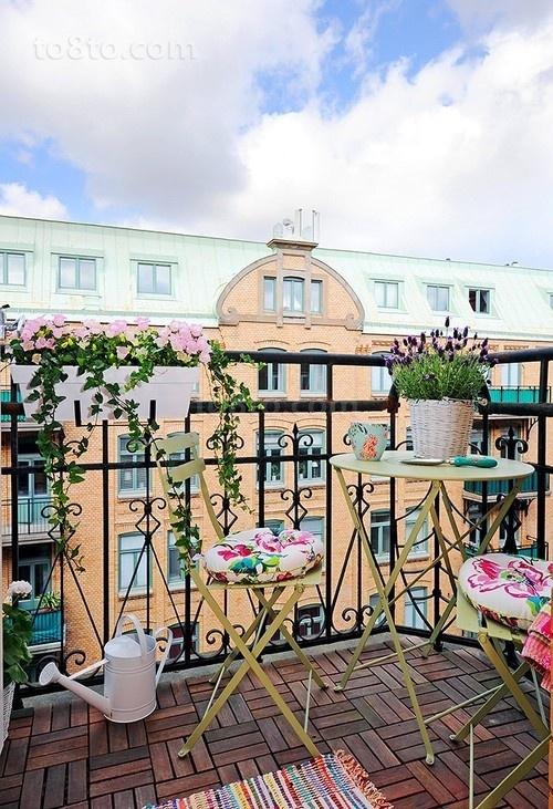 阳台不仅是居住者接受光照、吸收新鲜空气、进行户外锻炼、观赏、纳凉、晾晒衣物的场所。如果布置得好,还可以变成宜人的小花园,使人足不出户也能欣赏到大自然中最可爱的色彩,呼吸到清新且带着花香的空气。