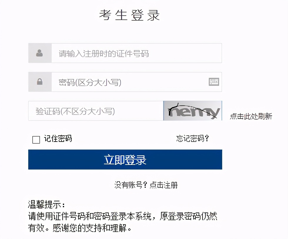 4.这一步需要考生登录,如果首次打开可点击下方,申请注册。