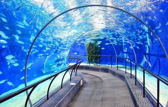 展出了来自五大洲、四大洋的450多个品种、12000多条珍稀鱼类及濒临绝种的稀有生物。其中最有特色的是南美洲的电鳗、澳洲的淡水锯鳐和射水鱼、南极洲的企鹅等,以及镇馆之宝草海龙的风姿。水族馆中还有长155米、也是目前世界上最长的海底隧道之一,让游客有身临其境之感。
