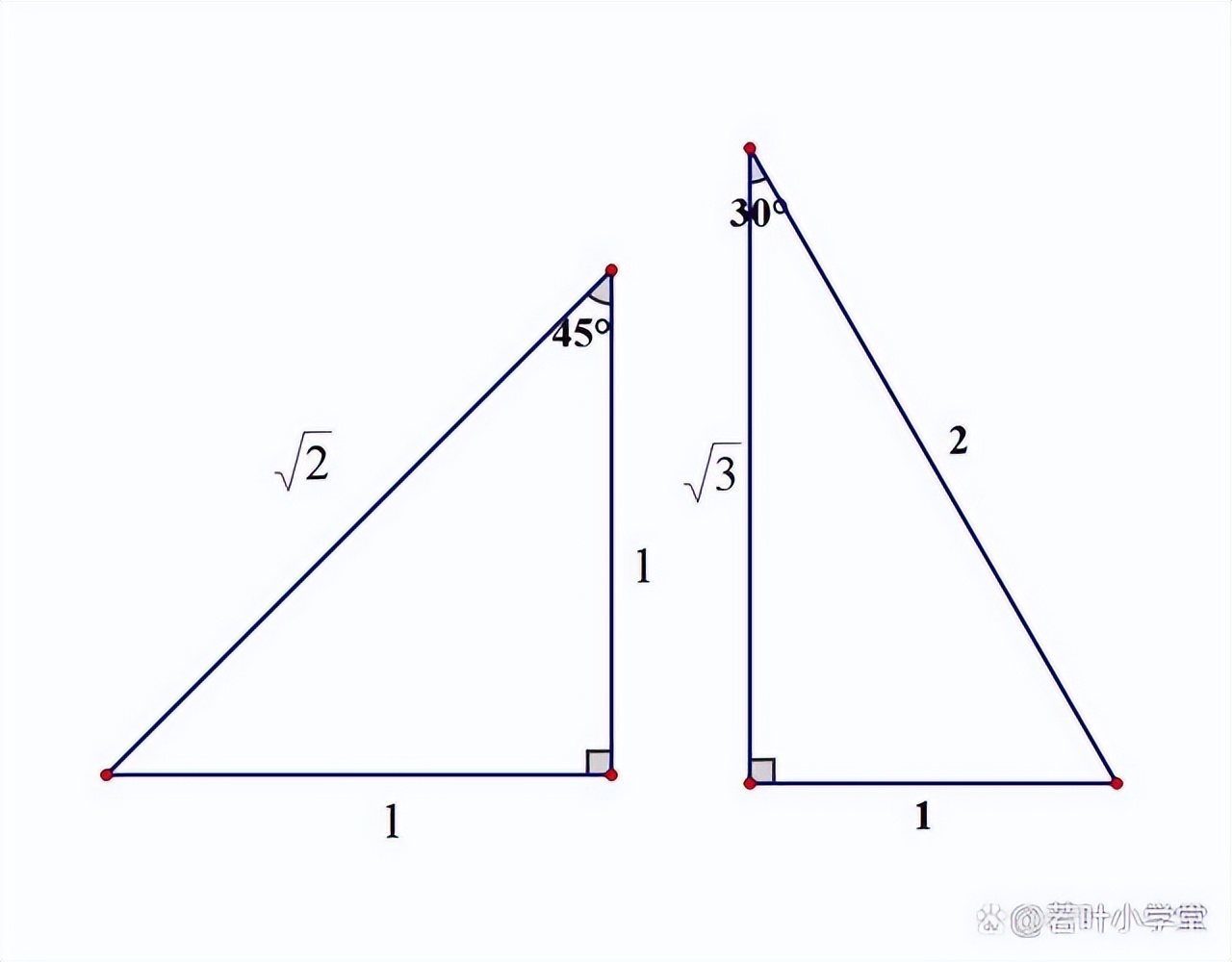 这两个三角形是最常见的两个特殊三角形,从小学就已经开始接触,对于这两个三角形的三边关系必须熟记。