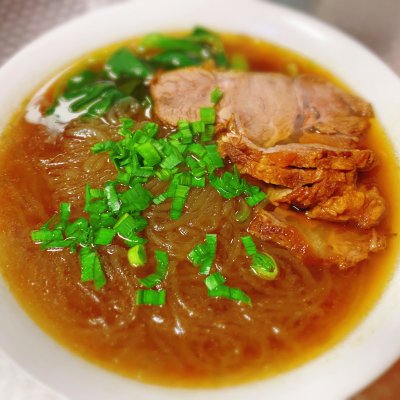 6、我们还用牛肉汤底下了一碗粉丝。加两片牛肉,看上去是不是很有食欲啊!