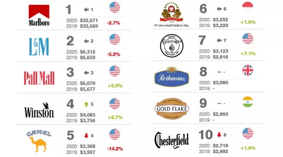香烟排行榜(2020全球最有价值的10大烟草品牌排行榜