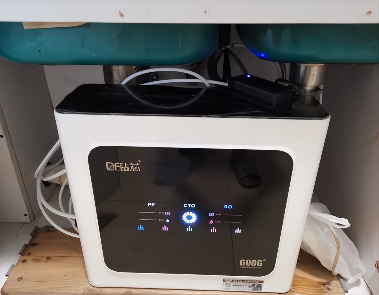 菲沃奇净水器采用的是三级滤芯进行过滤,滤芯分别是PP+C前置复合滤芯,后置T33滤芯,RO反渗透膜滤芯,净水流量约每分钟1.3升。