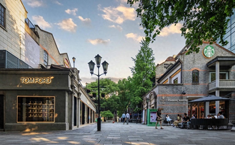 新天地分为南里和北里两个部分,南里以当代时尚建筑为主,石库门建筑为辅,是