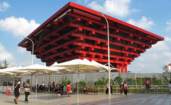 中华艺术宫,原来的世博园中国馆,是世博园标志性的建筑,也是保留下来最美的场馆,火红的色彩在阳光下熠熠生辉,