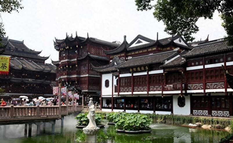如今,这一带已经成为上海著名的老城区,包含了老城隍庙、豫园及美食街等一大片区域,是来上海必游的景点之一。豫园,占地三十余亩,是明代的江南古典园林,园内有江南三大奇石之一的玉玲珑,还有著名的九曲桥,是拍摄古韵石桥、古风古貌的绝佳之地。