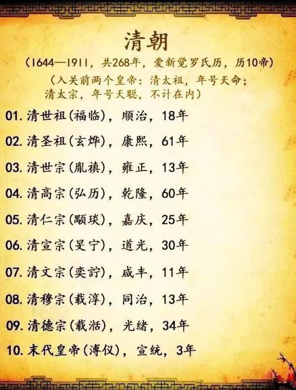 第二,年号,用来纪年。中国古代是用干支纪年,如甲午、己巳、戊戌、辛酉,但干支纪年有一个缺陷,就是每六十年一轮回,就是六十年一重复;另一种办法就是用帝王的年号纪年;或两者兼用。明清纪年,用皇帝年号,就是每一个皇帝有一个(个别有两个)年号,用它来纪年。我们常说的永乐、崇祯、康熙、雍正、乾隆,就是年号。现在通行将年号和名字等同,如康熙就是玄烨,雍正就是胤禛,乾隆就是弘历等。严格说来,“康熙”“雍正”“乾隆”等都是年号,不是名字。但大家已经习惯,约定俗成。这样,清朝十二个皇帝共有十三个年号(皇太极有天聪、崇德两个年号),十三个年号也称十三朝,所以有的书说“清宫十三朝演义”,就是这个意思。