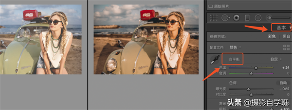 2、基本设置-白平衡:色温分蓝色和黄色,这个也就是可以说成冷色和暖色,冷色偏蓝一点,暖色偏黄一点。